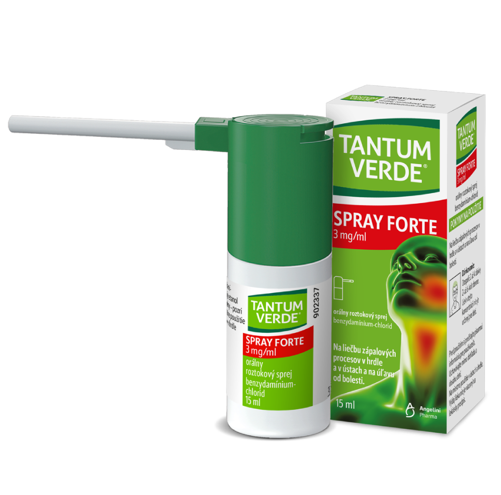Tantum Verde Spray Forte sa používa na úľavu od bolestivých príznakov podráždenia a zápalu spojeného s bolesťou hrdla.
